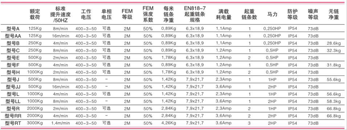 產(chǎn)品規(guī)格 · 承重:125-3000公斤 · 起重:標準18米(其它提升高度可選) · 速度:2 -30米/分鐘 · 電壓:1Phase或3Phase可選